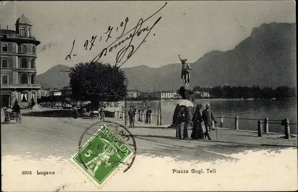 Ak Lugano Kanton Tessin Schweiz, Piazza Gugl. Tell