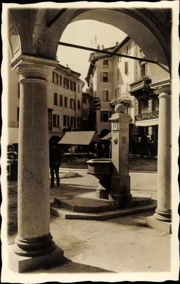 Ak Lugano Kanton Tessin Schweiz, Platz, Brunnen