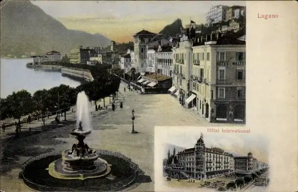 Ak Lugano Kanton Tessin Schweiz, Promenade, Hotel International
