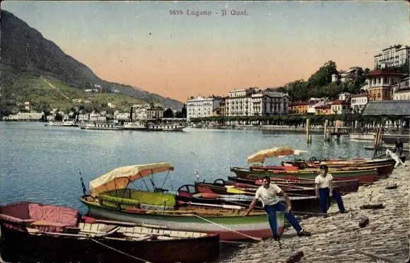Ak Lugano Kanton Tessin Schweiz, Quai, Boote, Stadt