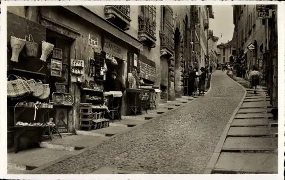 Ak Lugano Kanton Tessin Schweiz, Straße in Gebäude, Geschäfte, steile Straße