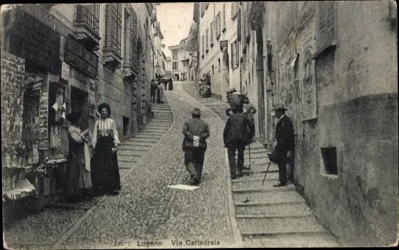Ak Lugano Kanton Tessin Schweiz, Via Cattedrale