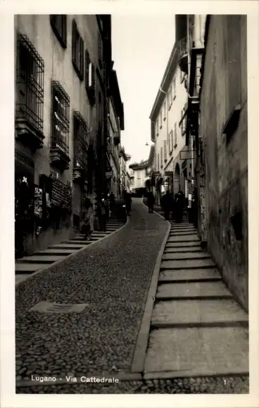 Ak Lugano Kanton Tessin Schweiz, Via Cattedrale