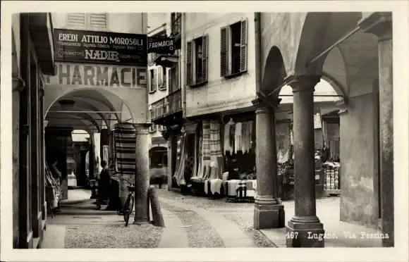 Ak Lugano Kanton Tessin Schweiz, Via Pessina, Pharmacie