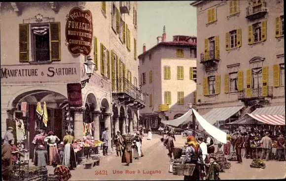 Ak Lugano Kanton Tessin Schweiz, une rue