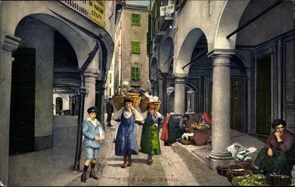 Ak Lugano Kt. Tessin Schweiz, Mercato, Marktstände, Frauen mit Tragekörben