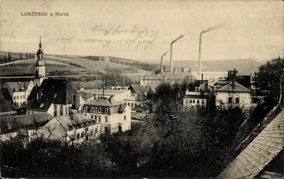 Ak Lunzenau in Sachsen, Gesamtansicht, Kirche, Fabriken