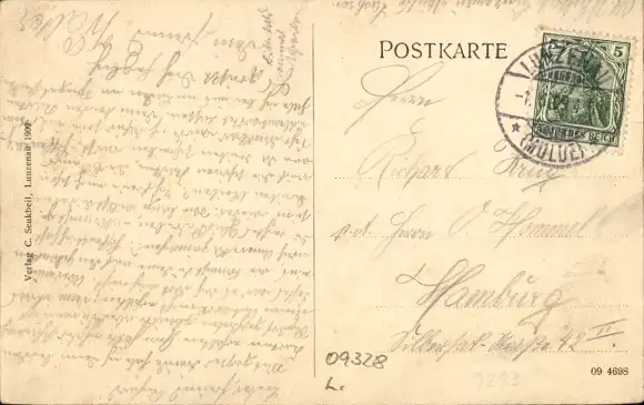 Zustand, siehe Scan, gelaufen, 1909 - ca 14 cm X 9 cm
