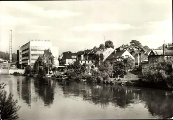 Ak Lunzenau in Sachsen, Partie an der Mulde, Fabrik