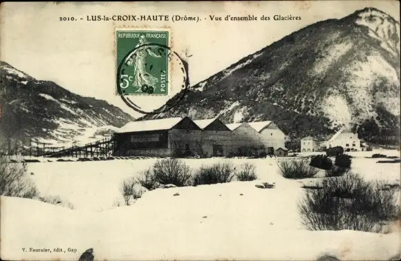 Ak Lus la Croix Haute Drôme, Vue d'ensemble des Glacieres