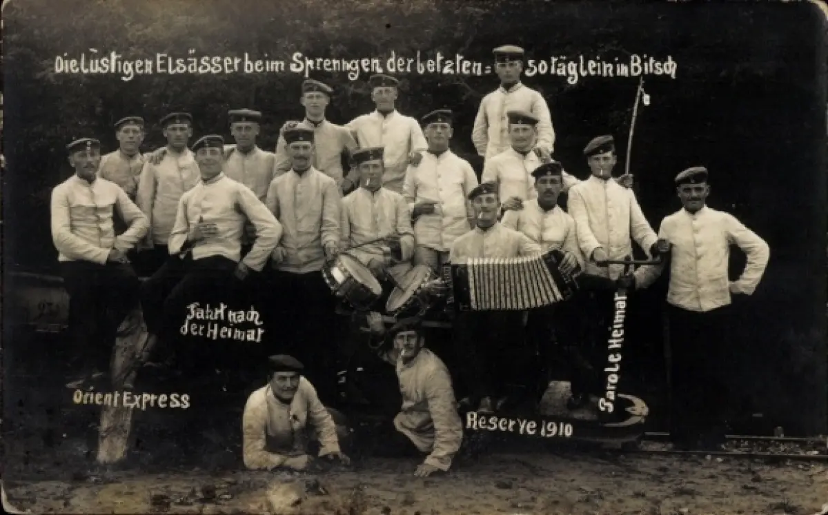 Ak Lustige Elsässer, Deutsche Soldaten in Uniformen, Musikinstrumente