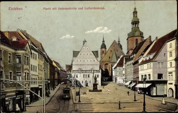 Ak Lutherstadt Eisleben, Andreaskirche, Markt, Lutherdenkmal