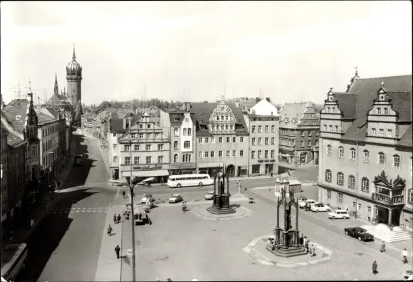 Ak Lutherstadt Wittenberg, Markplatz, Denkmäler