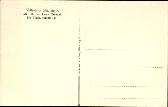 Ak Lutherstadt Wittenberg, Stadtkirche, Altarbild von Lucas Cranach, Die Taufe, 1547