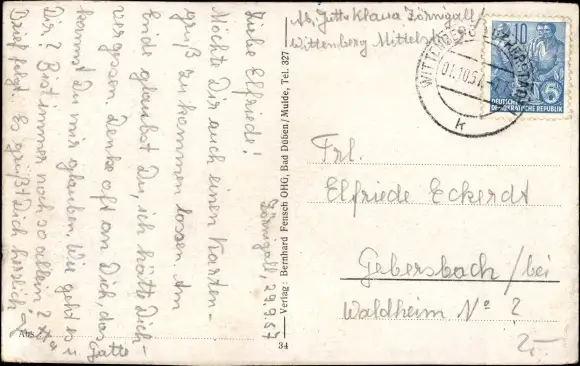 Zustand, siehe Scan, gelaufen, 1957 - ca 14 cm X 9 cm