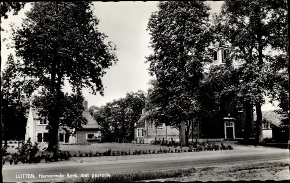 Ak Lutten Overijssel Niederlande, Hervormde Kerk met pastorie