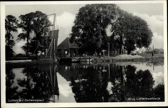 Ak Lutten aan de Dedemsvaart Overijssel, Brug Lutterhoofdwijk