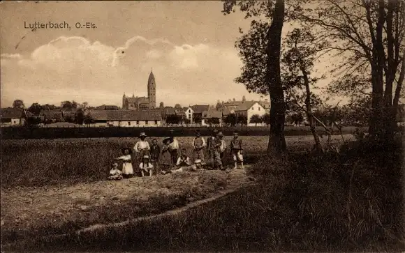 Ak Lutterbach Elsass Haut Rhin, Gesamtansicht, Gruppenbild