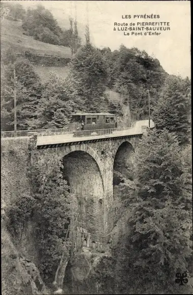Ak Luz Saint Sauveur Hautes Pyrénées, Pont d'Enfer, Bahn