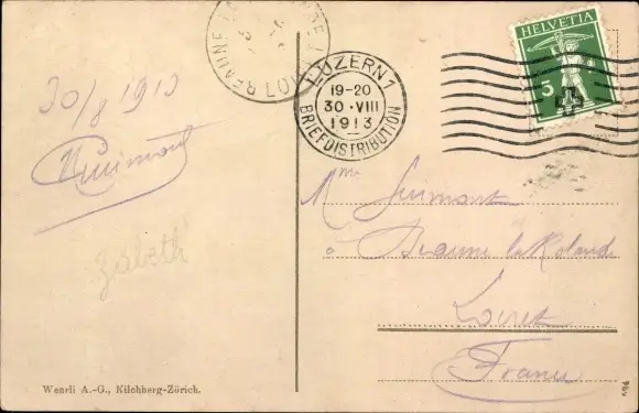 Zustand, siehe Scan, gelaufen, 1913 - ca 9 cm X 14 cm