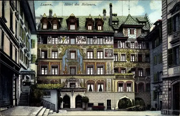 Ak Luzern, Hôtel des Balances, Vue de face