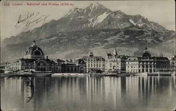 Ak Luzern Stadt Schweiz, Bahnhof und Pilatus