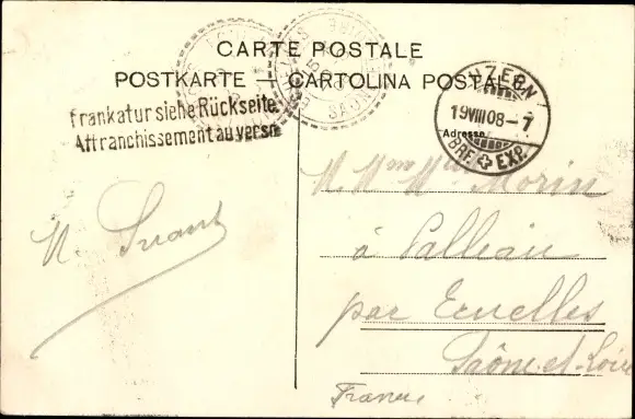 Zustand, siehe Scan, gelaufen, 1908 - ca 14 cm X 9 cm