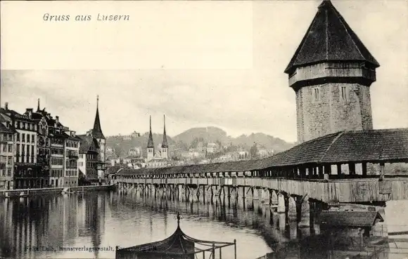 Ak Luzern Stadt Schweiz, Brücke, Wasserturm
