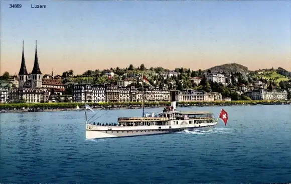 Ak Luzern Stadt Schweiz, Dampfer, Fahne