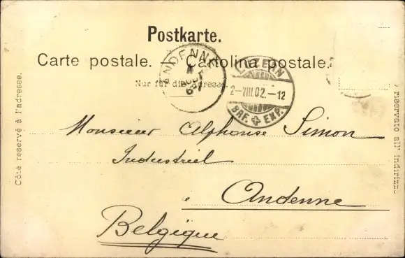 Zustand, siehe Scan, gelaufen, 1902 - ca 14 cm X 9 cm