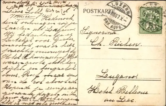 Zustand, siehe Scan, gelaufen, 1907 - ca 9 cm X 14 cm