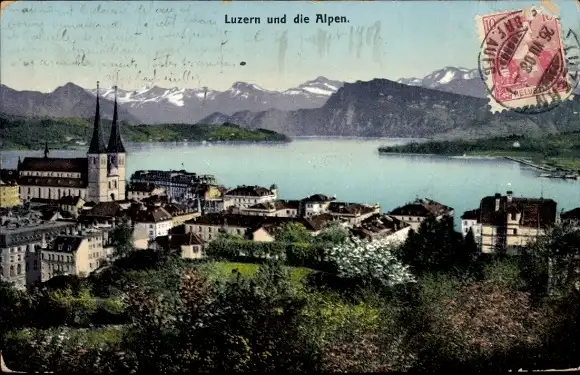 Ak Luzern Stadt Schweiz, Gesamtansicht, Alpen
