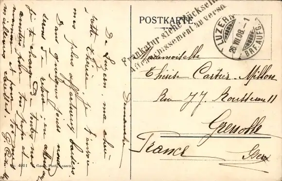Zustand, siehe Scan, gelaufen, 1908 - ca 14 cm X 9 cm
