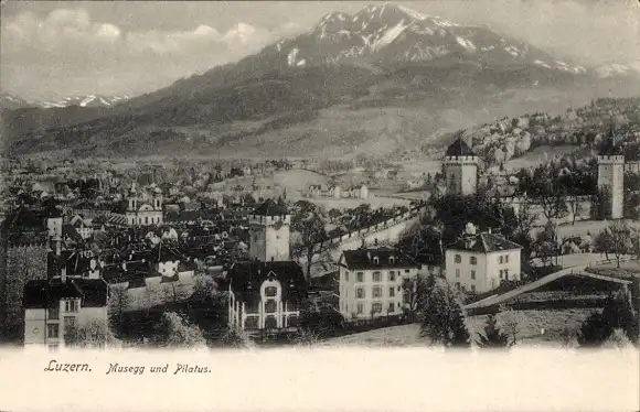 Ak Luzern Stadt Schweiz, Gesamtansicht, Musegg, Pilatus