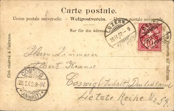 Zustand, siehe Scan, gelaufen, 1902 - ca 14 cm X 9 cm