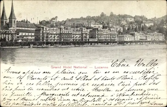 Ak Luzern Stadt Schweiz, Grand Hotel National, Seeblick