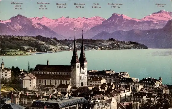 Ak Luzern Stadt Schweiz, Hofkirche, Alpen