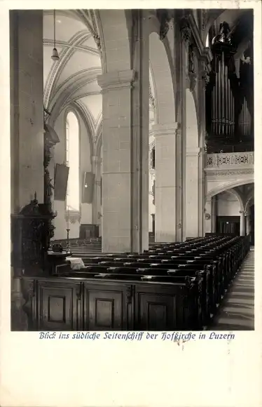 Ak Luzern Stadt Schweiz, Hofkirche, Blick ins südliche Seitenschiff