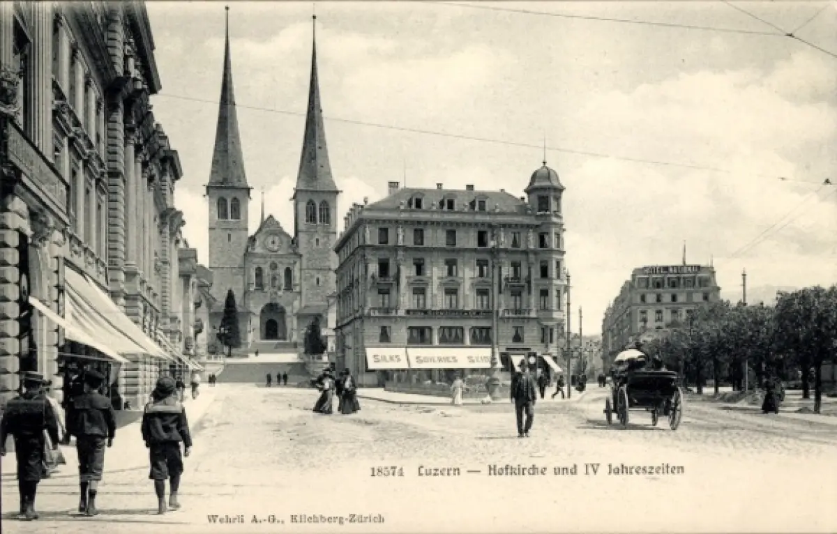 Ak Luzern Stadt Schweiz, Hofkirche und IV Jahreszeiten