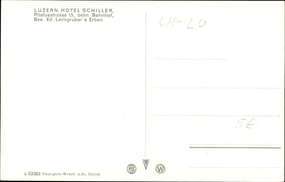 Ak Luzern Stadt Schweiz, Hotel Schiller, Pilatusstraße 15