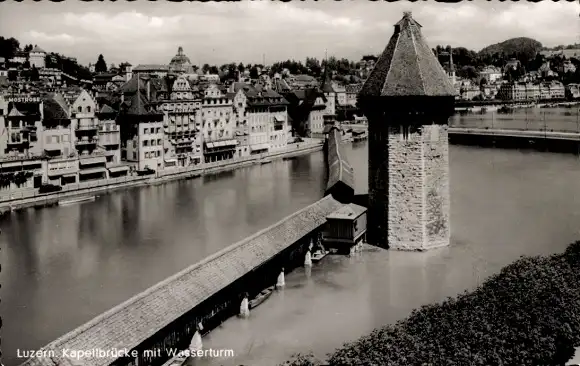 Ak Luzern Stadt Schweiz, Kapelbrücke mit Wasserturm