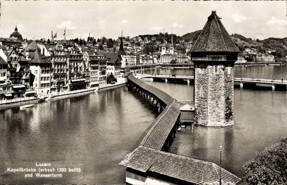 Ak Luzern Stadt Schweiz, Kapelbrücke mit Wasserturm