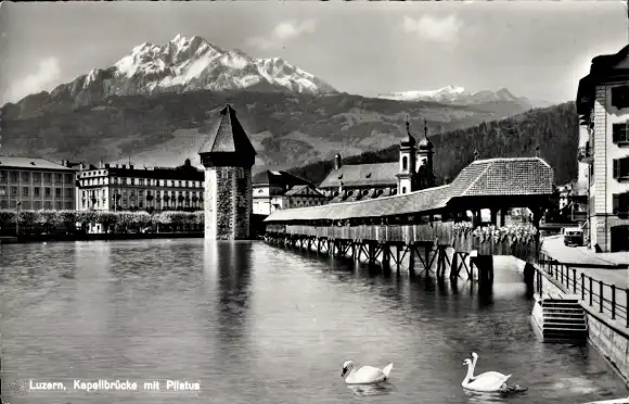 Ak Luzern Stadt Schweiz, Kapellbrücke, Pilatus
