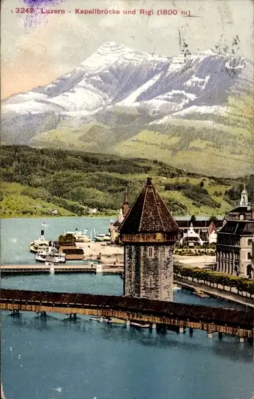 Ak Luzern Stadt Schweiz, Kapellbrücke, Rigi