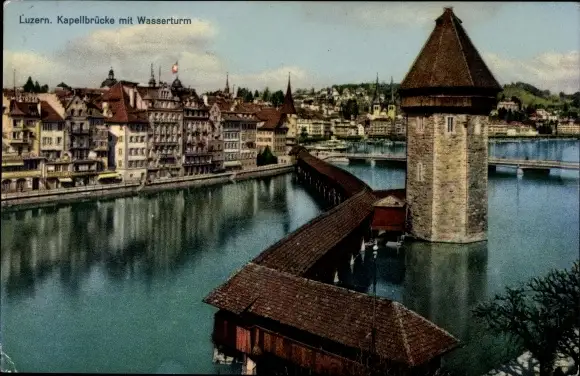 Ak Luzern Stadt Schweiz, Kapellbrücke, Wasserturm
