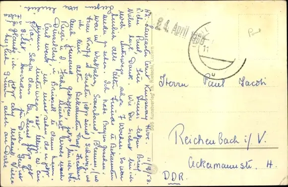 Zustand, siehe Scan, gelaufen, 1958 - ca 14 cm X 9 cm