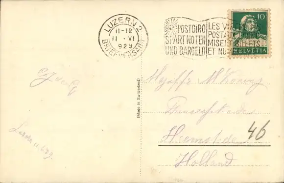 Zustand, siehe Scan, gelaufen, 1929 - ca 14 cm X 9 cm