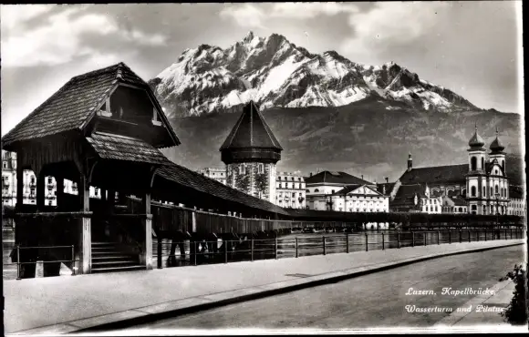 Ak Luzern Stadt Schweiz, Kapellbrücke, Wasserturm, Pilatus
