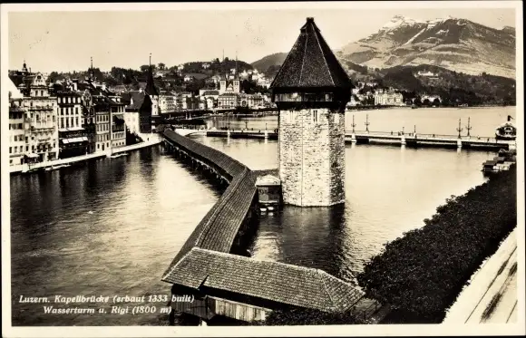 Ak Luzern Stadt Schweiz, Kapellbrücke, Wasserturm, Rigi