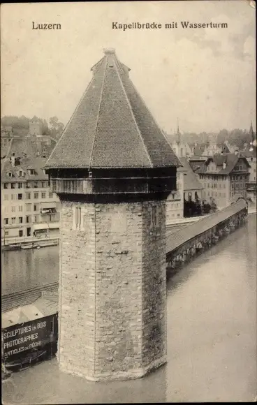 Ak Luzern Stadt Schweiz, Kapellbrücke mit Wasserturm